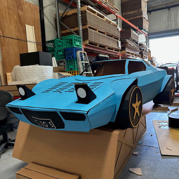 We’ve even pushed the boundaries of what’s possible with cardboard in one of our previous projects, where we built an entire cardboard car that could be 'worked on' during the performance. The car featured an engine and moving parts, making it not only a striking visual but also an interactive piece that played a crucial role in the show’s narrative.