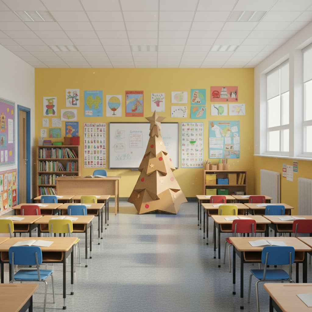 Bring festive cheer to your child friendly space with our environmentally friendly Christmas art project. Allow your children or students to colour in their own decoration to add the tree.